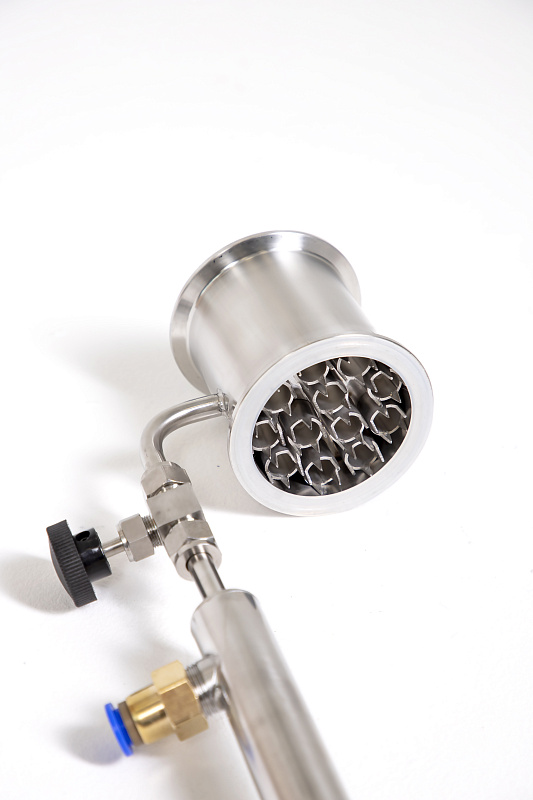 Съемный носик с ТСА направляет поток самогона и предотвращает захлеб колонны. Для большего удобства можно подсоединить гибкую трубку, которая будет надежно зафиксирована за счет насечек на металлическом патрубке.